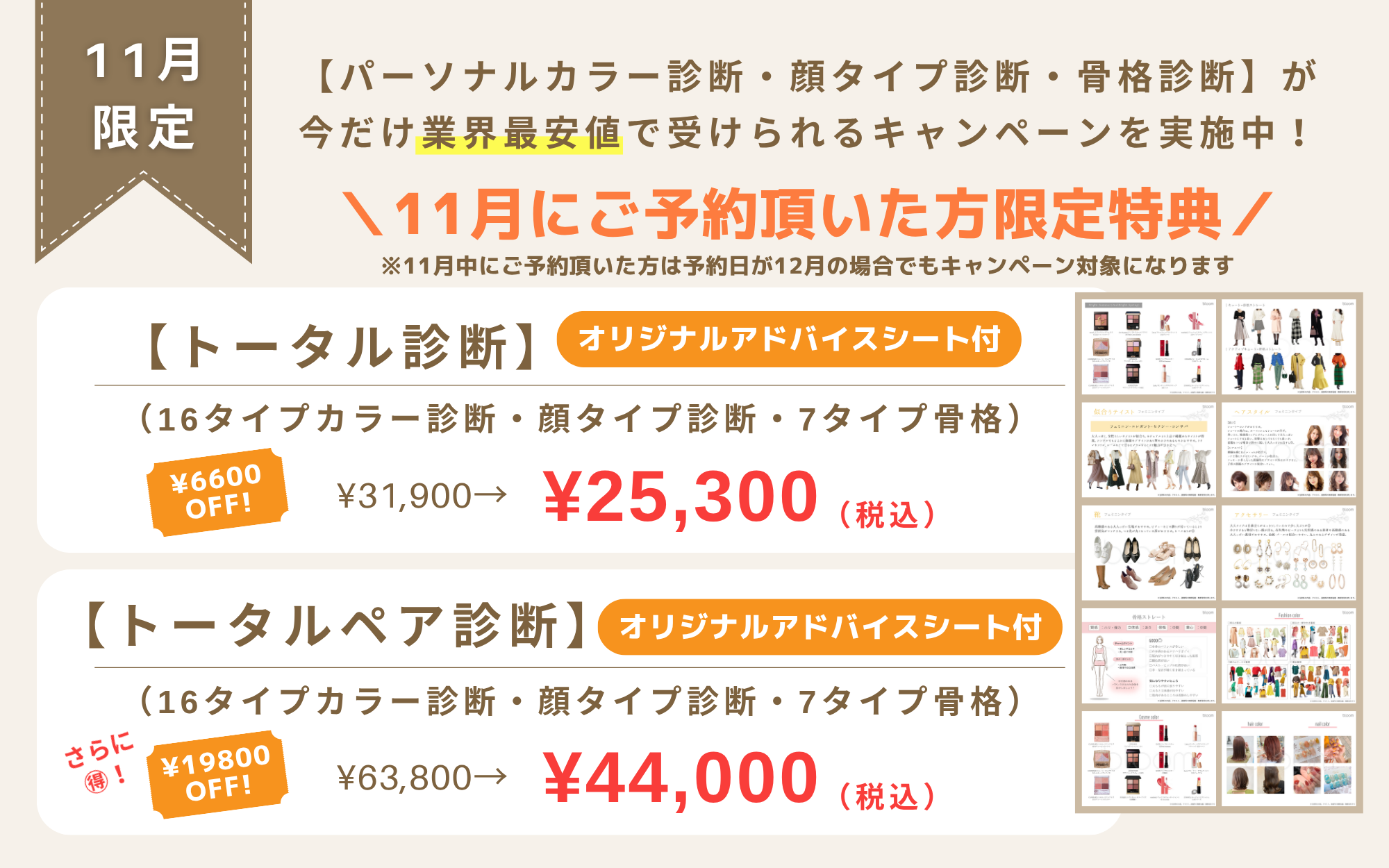 ※顔タイプor骨格診断のいずれかを受けられた方のみ予約可能(他サロン診断も可)